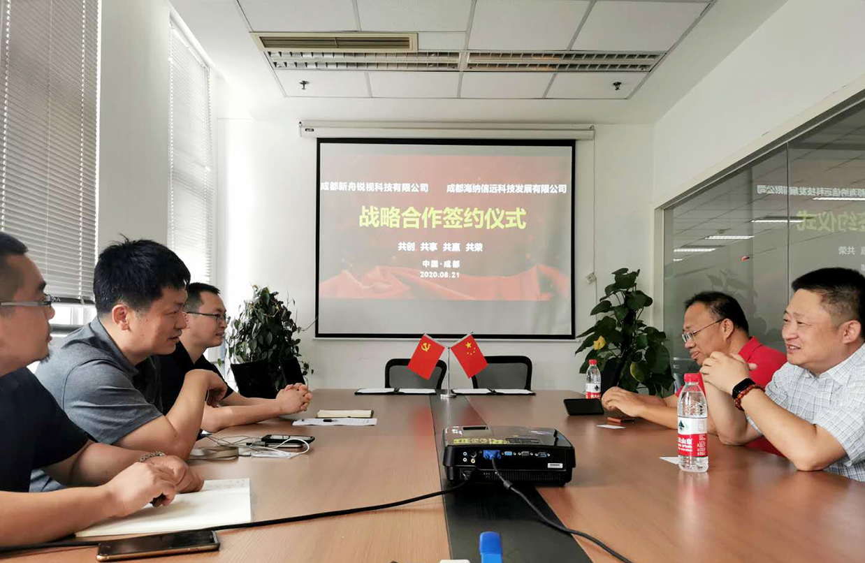 2020年8月21日上午,成都新舟銳視科技有限公司與成都海納信遠科技發展有限公司戰略合作協議,于成都天府軟件園新舟銳視總部簽署。成都新舟銳視科技有限公司董事長鄒鋼、成都海納信遠科技發展有限公司石總、張總出席了簽約儀。新舟銳視董事長鄒鋼與海納信遠石總代表雙方簽署了《戰略合作協議》